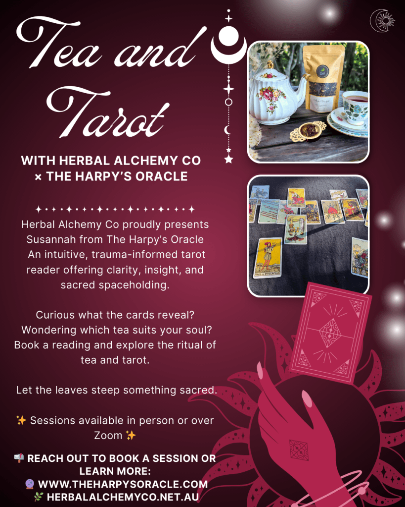 That’s why I created Tea & Tarot, a collaboration between two witches: myself, Susannah from The Harpy’s Oracle, and Tegan from Herbal Alchemy Co.